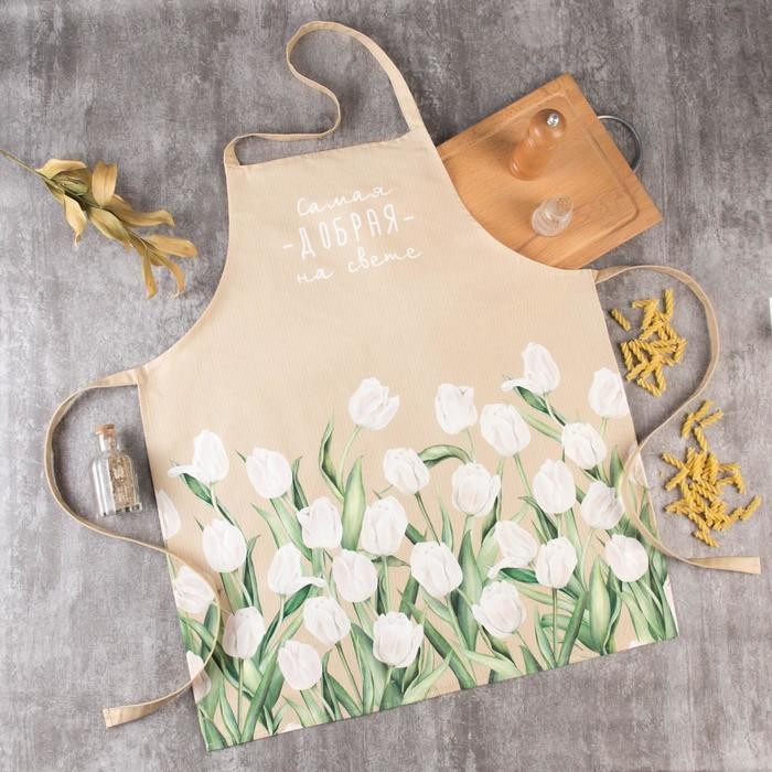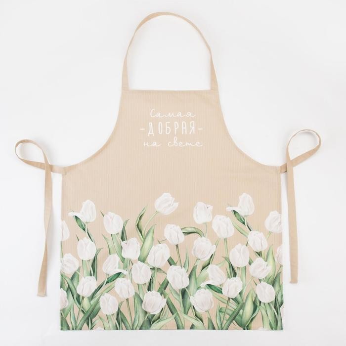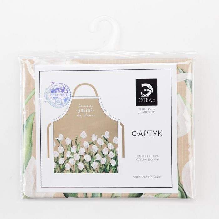 Фартук «Этель» Белые тюльпаны 60*70 см, 100% хлопок, саржа 190 г/м2