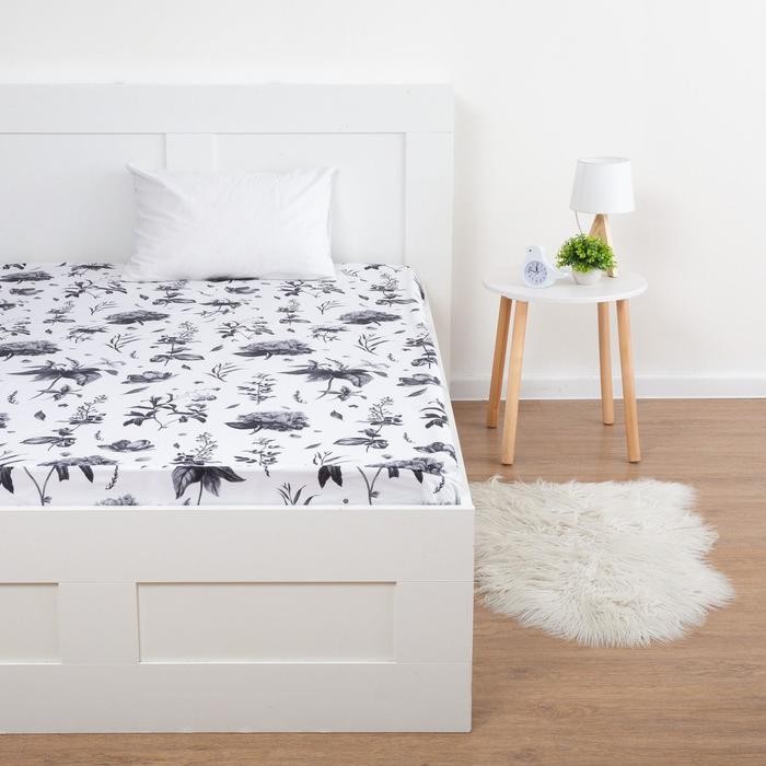 Простыня на резинке Этель 160*200*25 см «Ботаника», 100% хлопок, мако-сатин, 128 г/м²