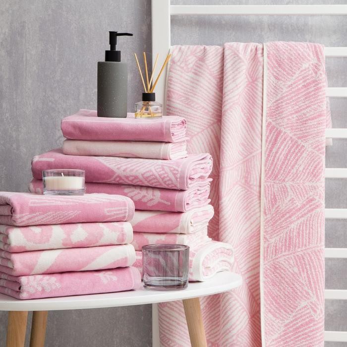 Полотенце махровое Этель Foglie розовый, 70×130 см, 100% хл, велюр, 420 гр/м2