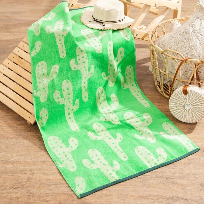 Полотенце «Кактусы» 70*140 см, велюр/махра 350гр/м2, 100% хлопок