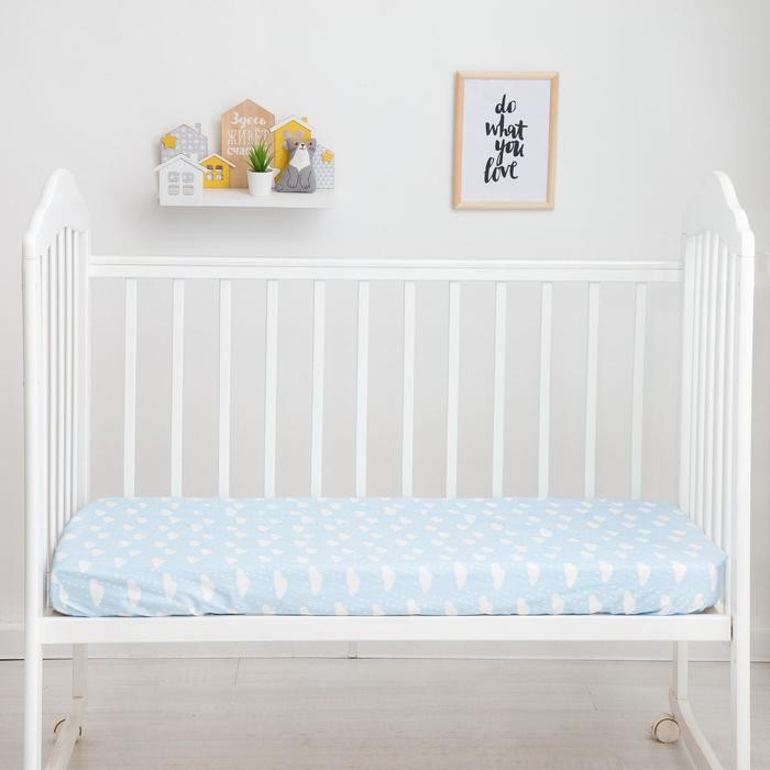 Простыня на резинке «LoveLife» Голубые облачка 60*120+20 см, 100% хлопок, сатин