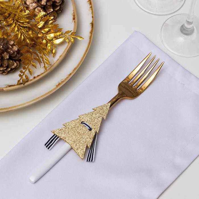 Набор для декора столовых предметов «Елка», 4 шт, цв. золото 5×7,5 см 100% п/э, фетр