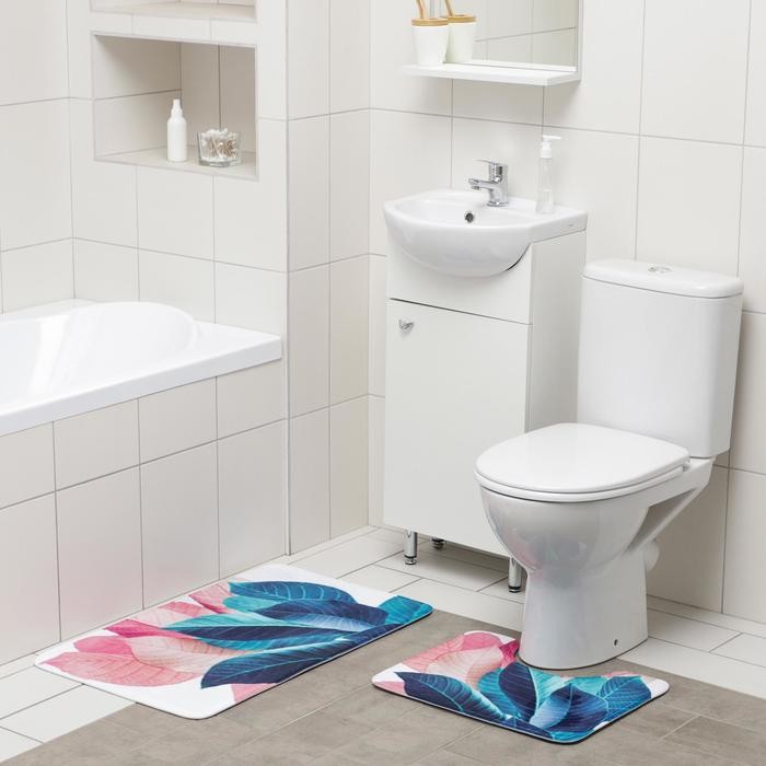Набор ковриков для ванны и туалета Доляна «Контраст», 2 шт: 50×80, 40×50 см