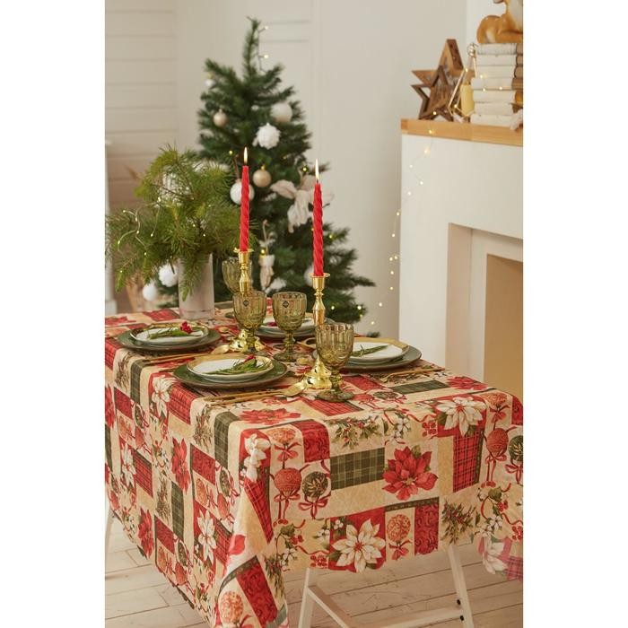 Скатерть Доляна «Новый год: Новогодние игрушки» 145*300 +/- 2 см, 100% п/э