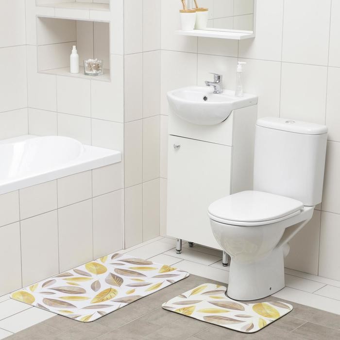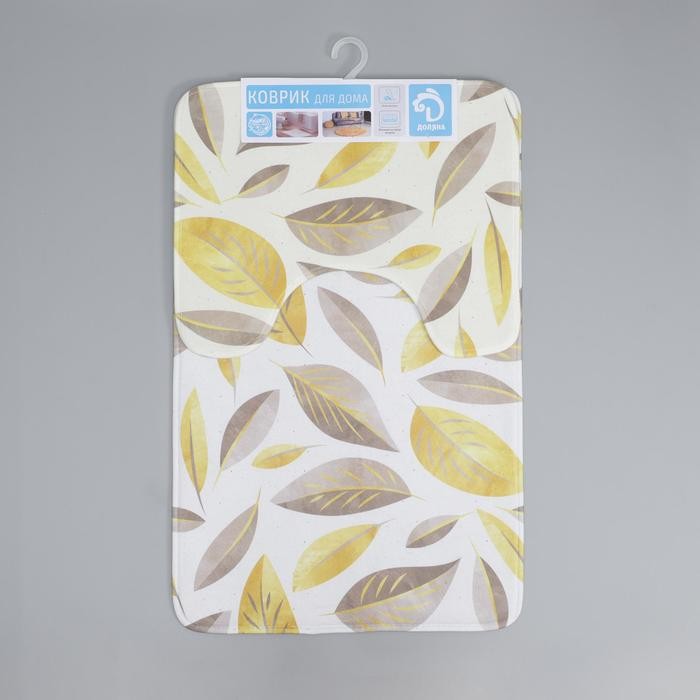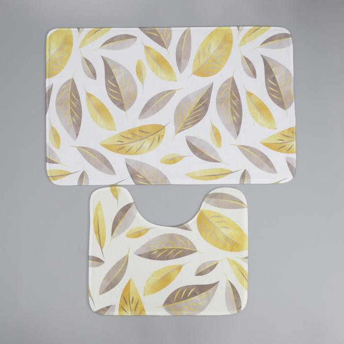 Набор ковриков для ванны и туалета Доляна «Листья», 2 шт: 50×80, 40×50 см