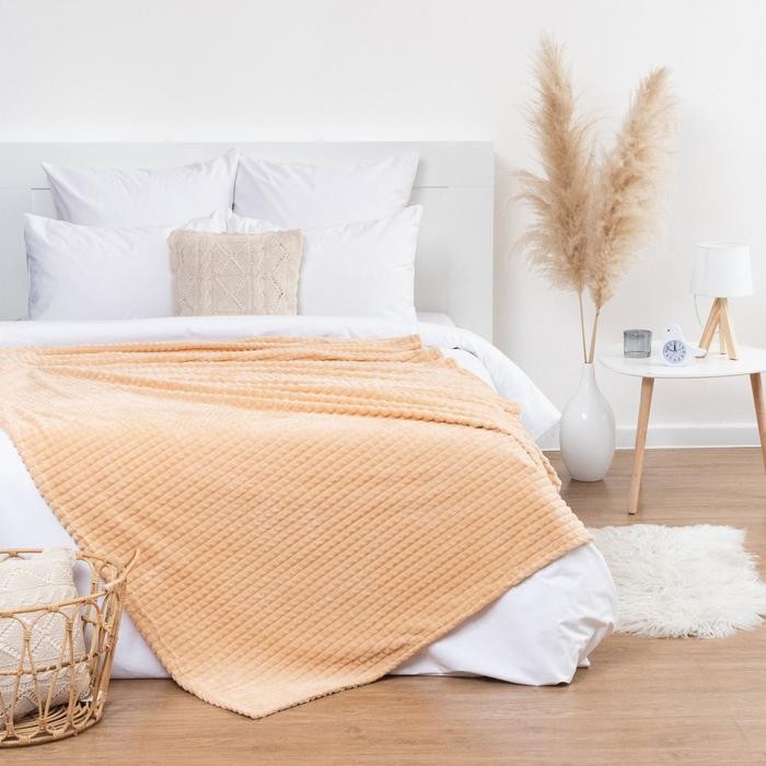Плед Этель «Клетка» 180*200 см, цв.бежевый, корал-флис, 240гр/м2, 100% полиэстер