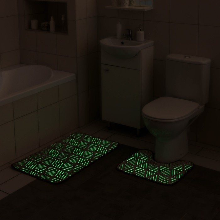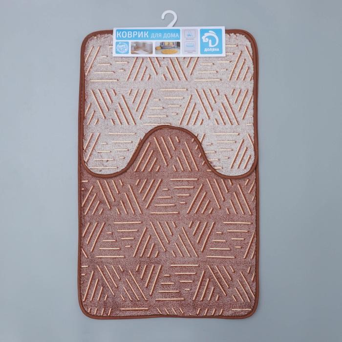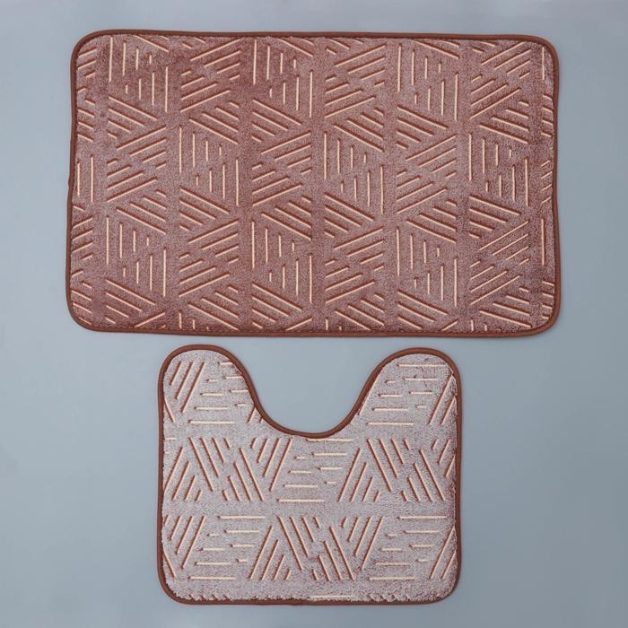 Набор ковриков для ванной и туалета Доляна «Светящиеся грани», 2 шт: 50×80, 50×40 см, цвет коричневый