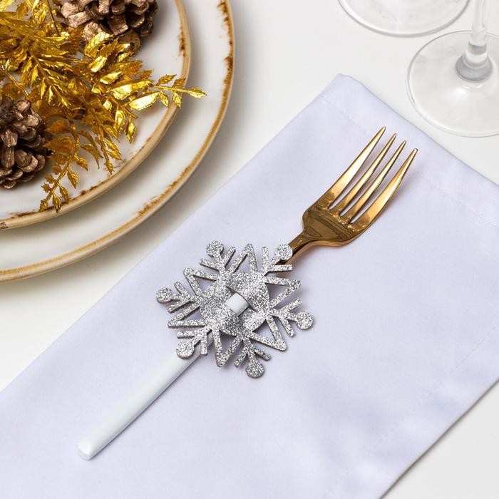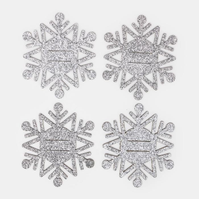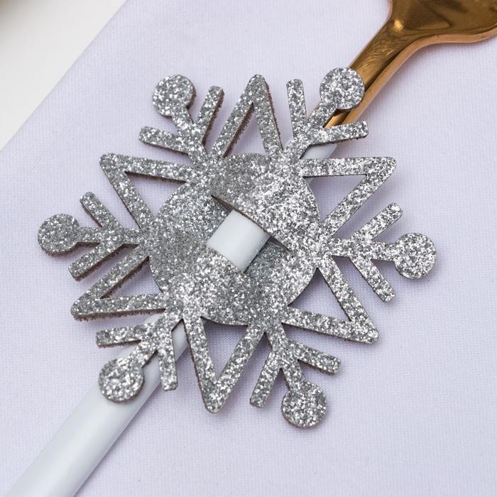 Набор для декора столовых предметов «Снежинка», 4 шт, цв. серебро 6,5×7,5 см, 100% п/э, фетр 626 098