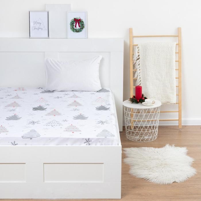 Простыня на резинке Этель 160*200*25 см «Рождественская ель», 100% хлопок, бязь, 125 гр/м2