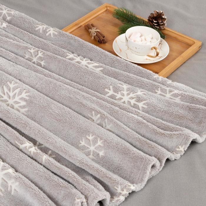 Плед светящийся в темноте Этель «Снежинки» 150*200 см,100% п/э, корал-флис, 220 гр/м2