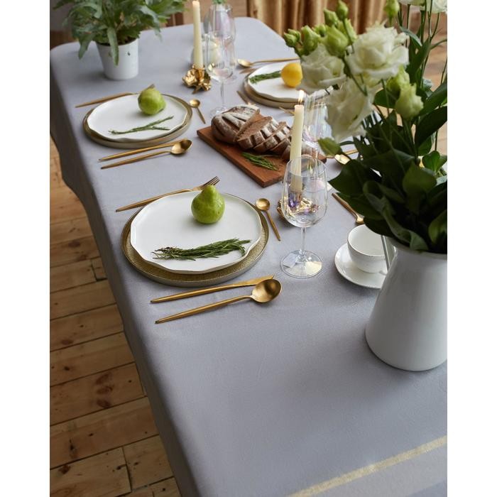 Скатерть «Этель» 110×165 см, цв. серый с золотой нитью, 100% хлопок, 163 г/м2
