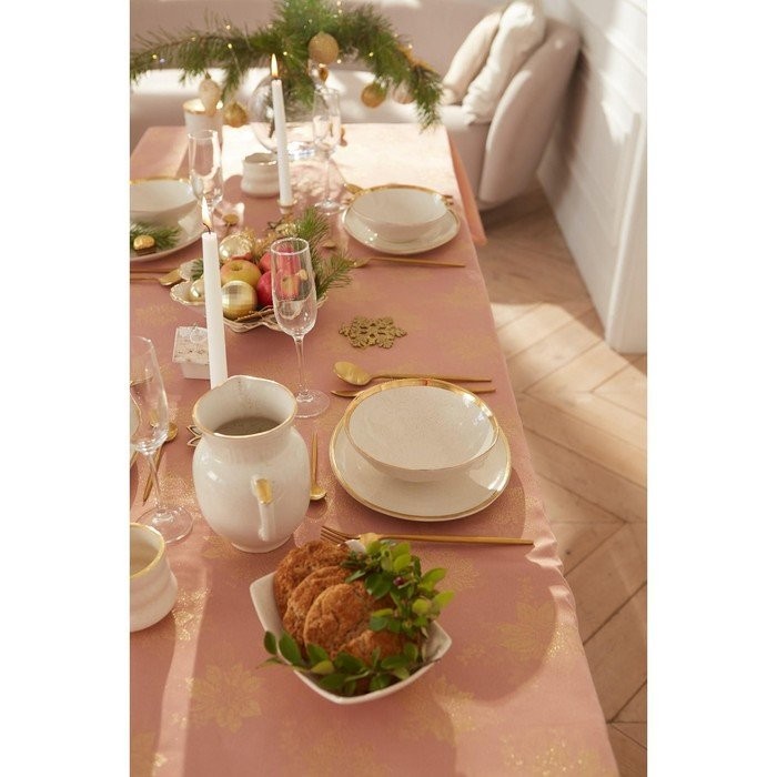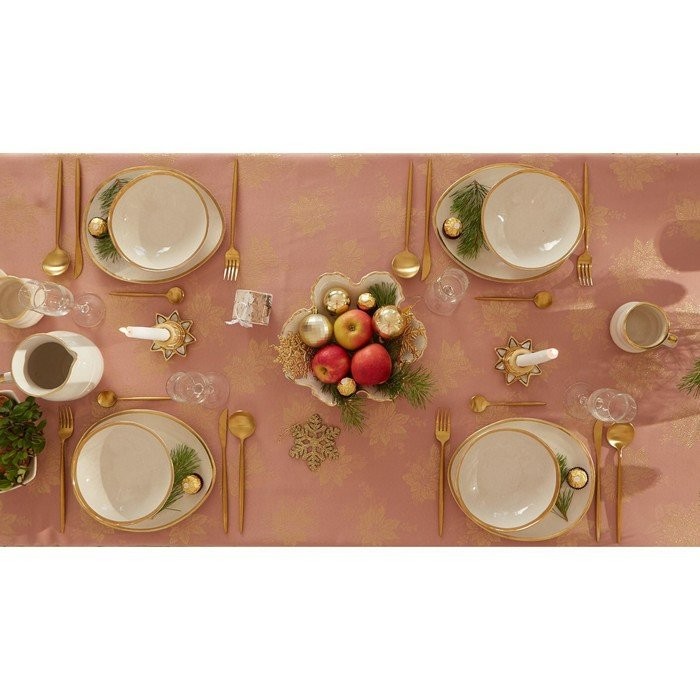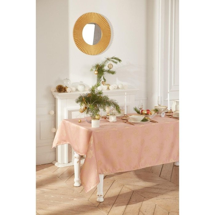 Скатерть Этель «Пуансеттия» цв.розовый, 142*220 +/-3 см, 115 ±10 гр,100%