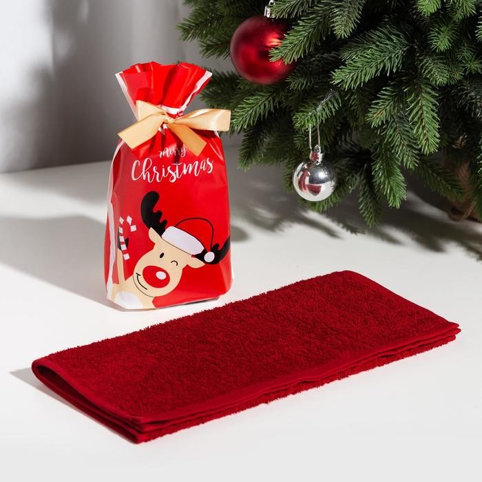 Полотенце подарочное Экономь и Я «Весёлый олень» 30×60 см, цвет бордовый, 100% хл, 320 г/м2