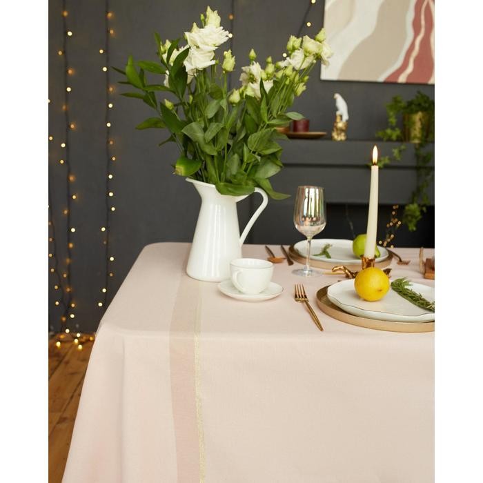 Скатерть «Этель» 110×165 см, цв. пудровый с золотой нитью, 100% хлопок, 163 г/м2