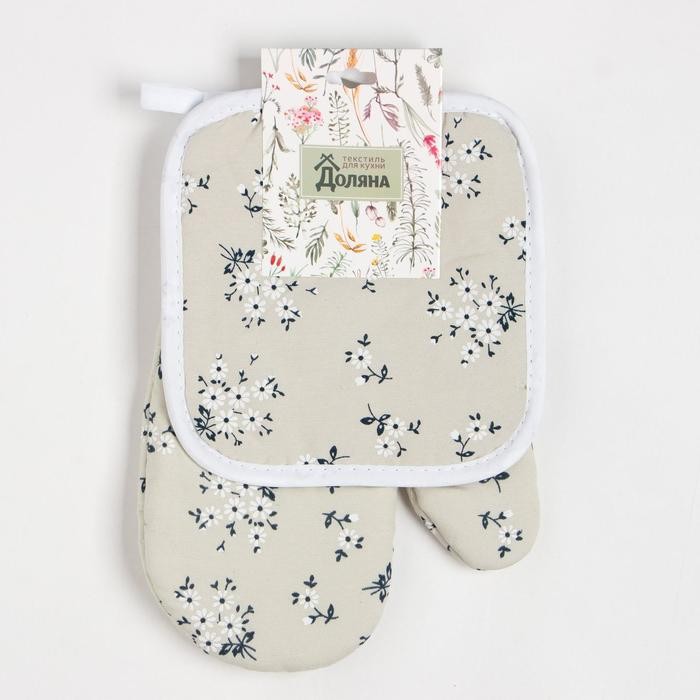 Кухонный набор Доляна «Ромашки», прихватка 17*17 см, рукавица 26*16 см,100% п/э