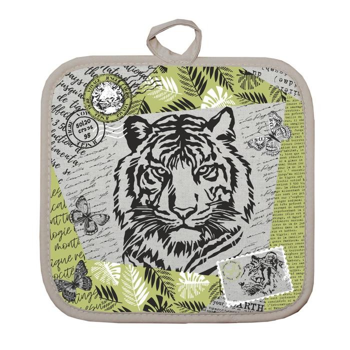 Прихватка Тигр винтаж 18×18 см, лен 50%, хлопок 50%, 160г/м2