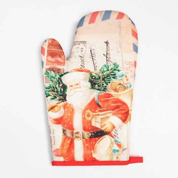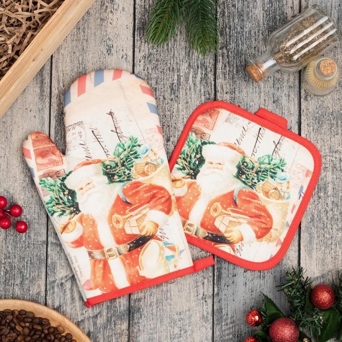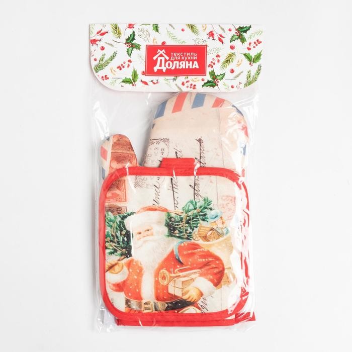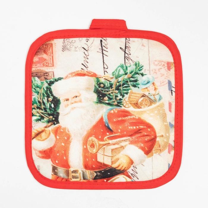 Кухонный новогодний набор Доляна «Новый Год», прихватка17х17см, варежка-прихватка 26×16 см,100% п/э