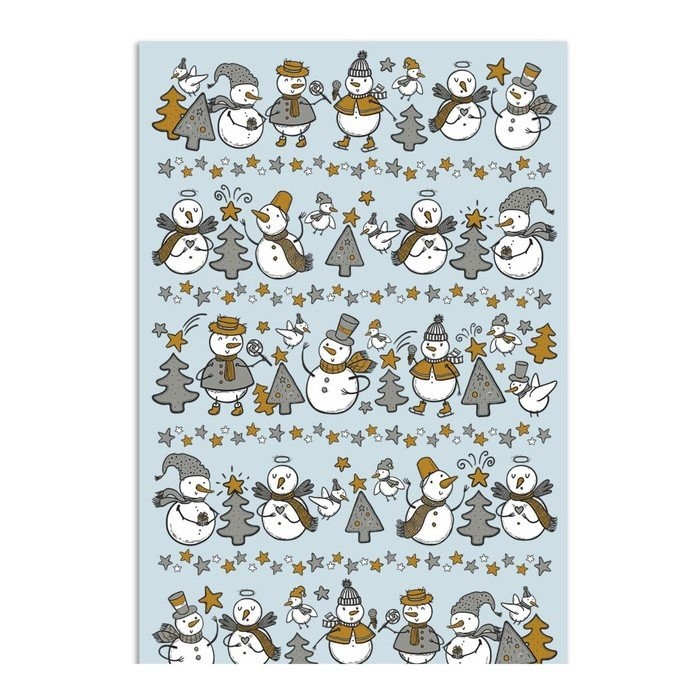 Полотенце Снеговики и елки 39×60 см, серо-голубой, хлопок 100%, 200г/м2