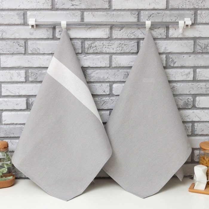 Набор полотенец «Этель» 2 шт, цв. серый, 100% хлопок, 163 г/м2