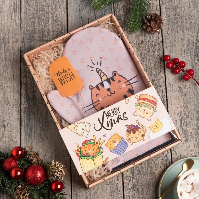 Новогодний набор подарочный Merry Xmas варежка-прихватка, лопатка силикон