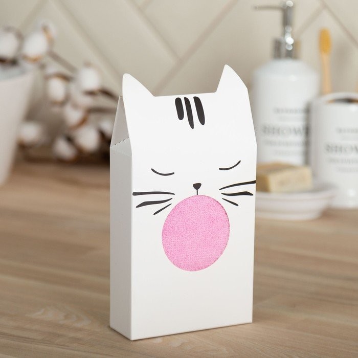 Полотенце подарочное Экономь и Я «Котик» 30*60 см, розовый, 100% хл, 320 г/м2