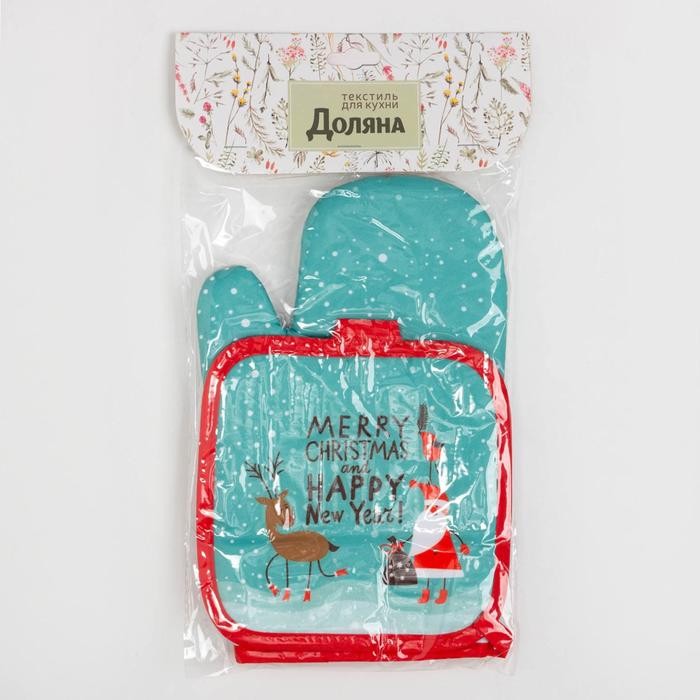 Кухонный новогодний набор Доляна «New Year», прихватка 17*17 см, варежка 26*16 см,100% п/э