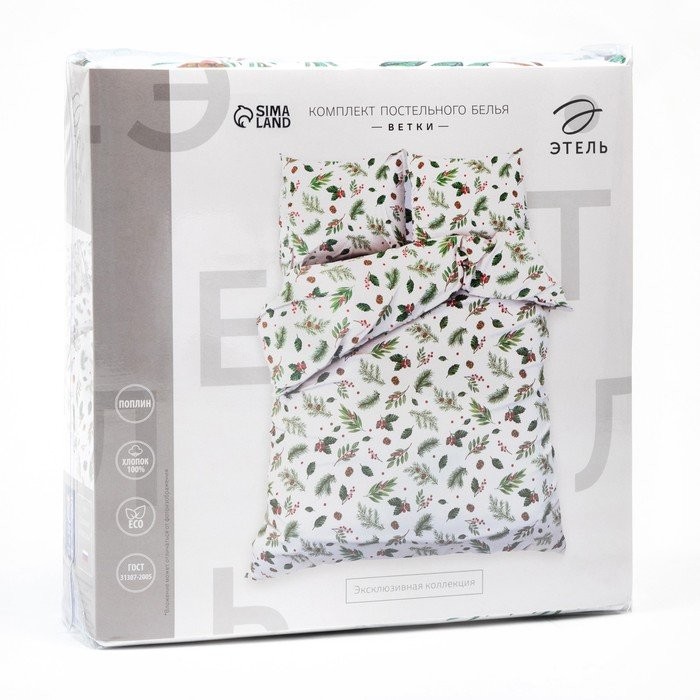 Постельное белье «Этель» 1.5 сп Ветки 143*215 см, 150*214 см, 70*70 см — 2 шт