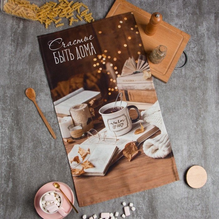 Полотенце «Этель» Счастье быть дома 40×73 см, 100% хл, саржа 190 гр/м2