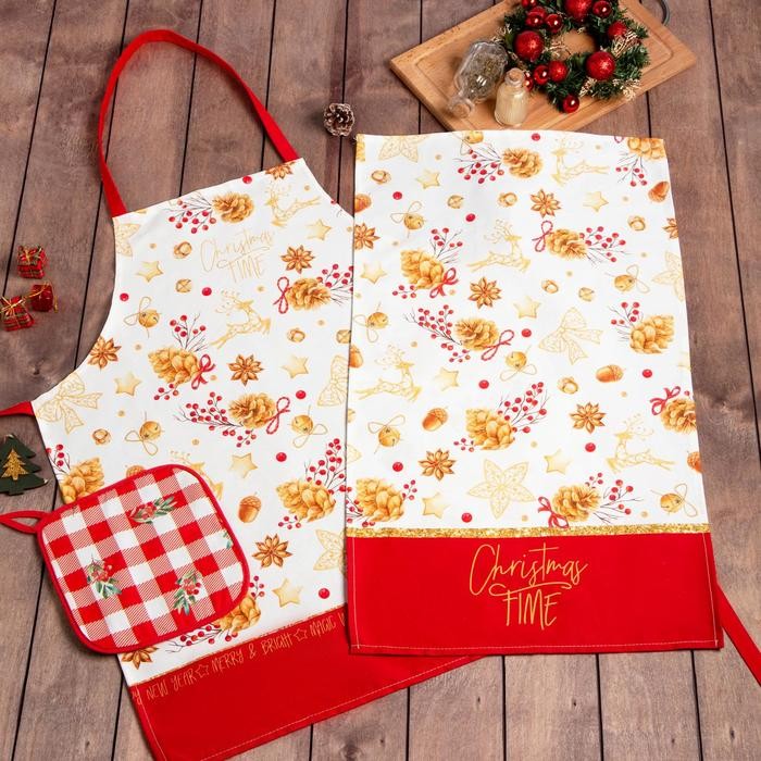 Набор подарочный «Этель» Golden Christmas, фартук, полотенце, прихватка