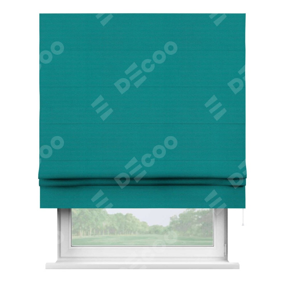 Римская штора производителя «Cortin», используется для проёма, пошита из ткани блэкаут однотонный бирюзовый, артикул ткани 88297. Имеет универсальный механизм и подходит для монтажа: на потолок, на стену и в нишу.