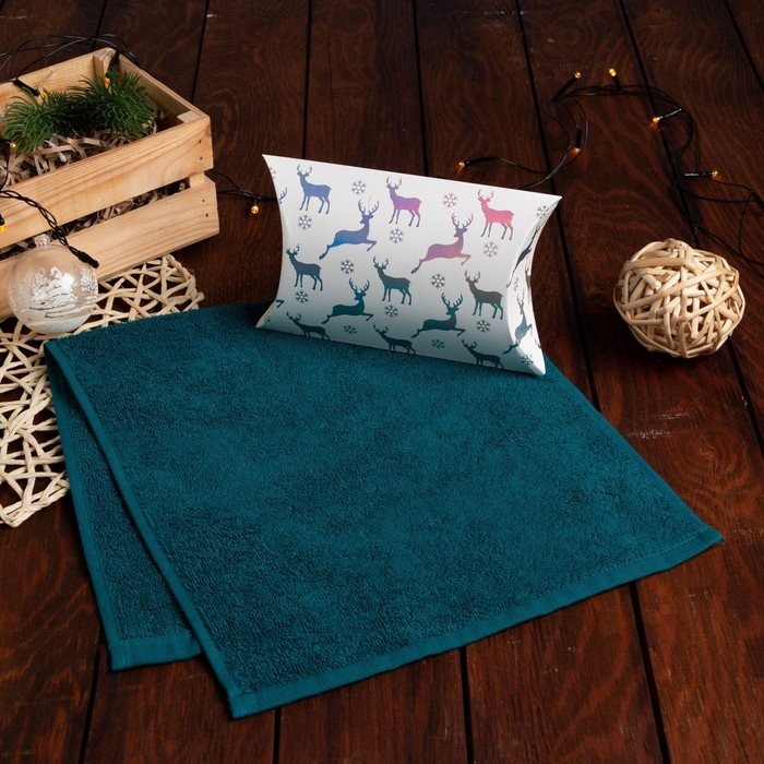 Полотенце подарочное в коробке Экономь и Я, Вид 2, 30*60 см, цв.серо-синий,100% хл, 320 г/м2