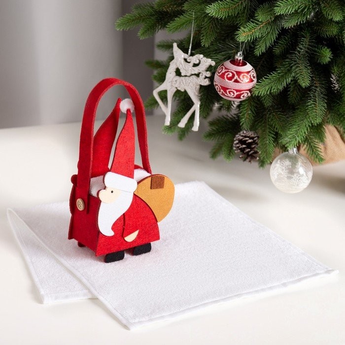Полотенце в корзинке Экономь и Я «Дед Мороз» 30*60 см, цв. белый, 100%хл, 320 г/м2