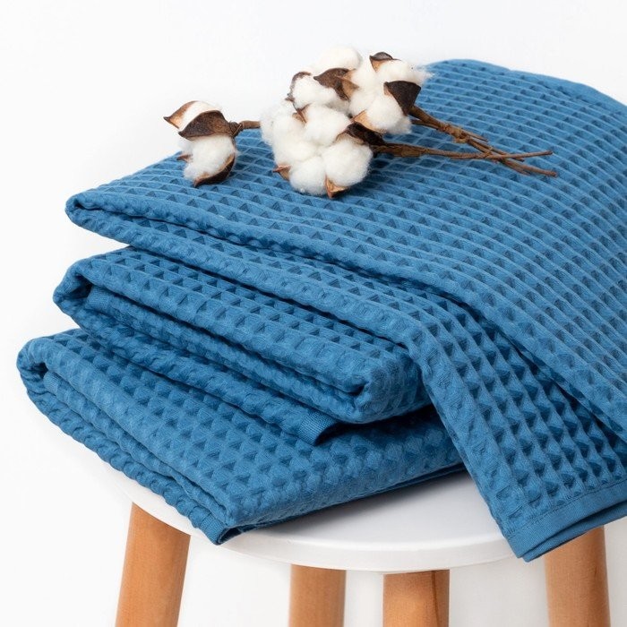 Полотенце вафельное банное Этель «Boho» 67*140 см, цв. синий, 100% хл, 290 гр/м2