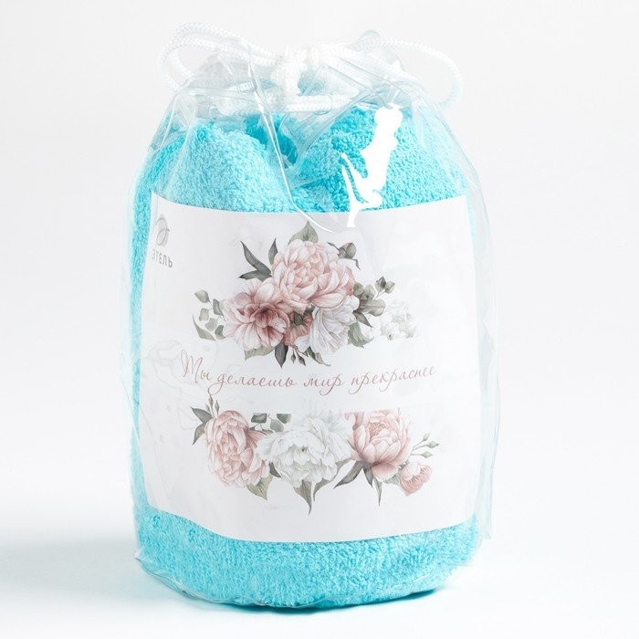 Полотенце подарочное Этель «Ты делаешь мир прекраснее» голубой, 50х90см, 100%хл, 340г/м2