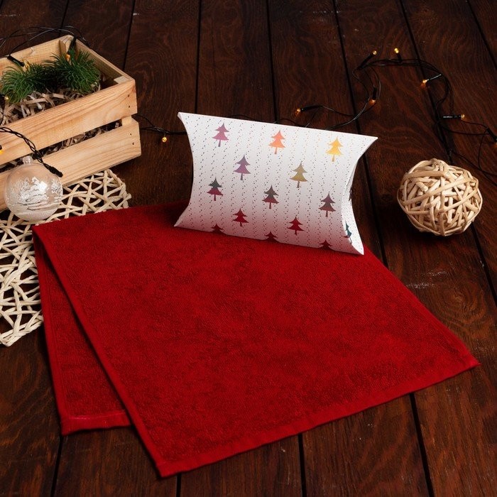 Полотенце подарочное в коробке Экономь и Я, Вид 1, 30*60 см, цв.бордовый, 100% хл, 320 г/м2