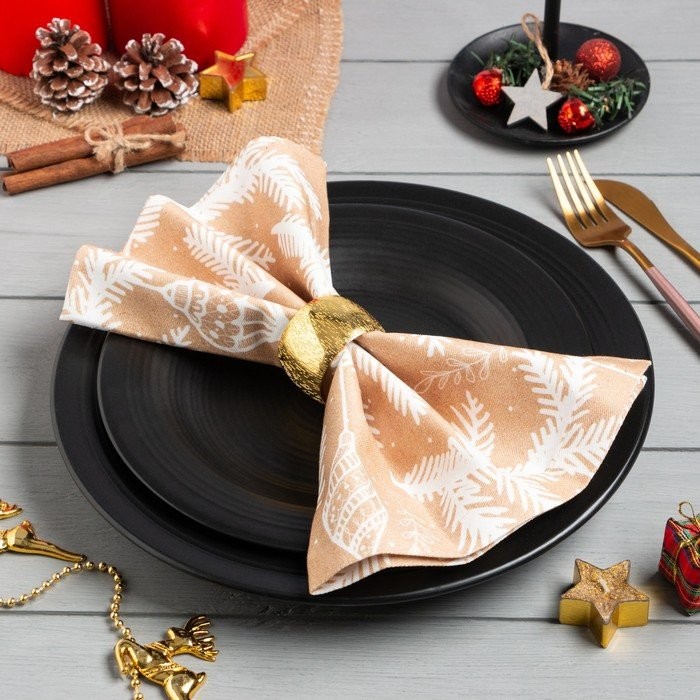 Набор салфеток с декорат. кольцами «Winter» 45×45 см — 2 шт, 100% хл, саржа 190гр/м2