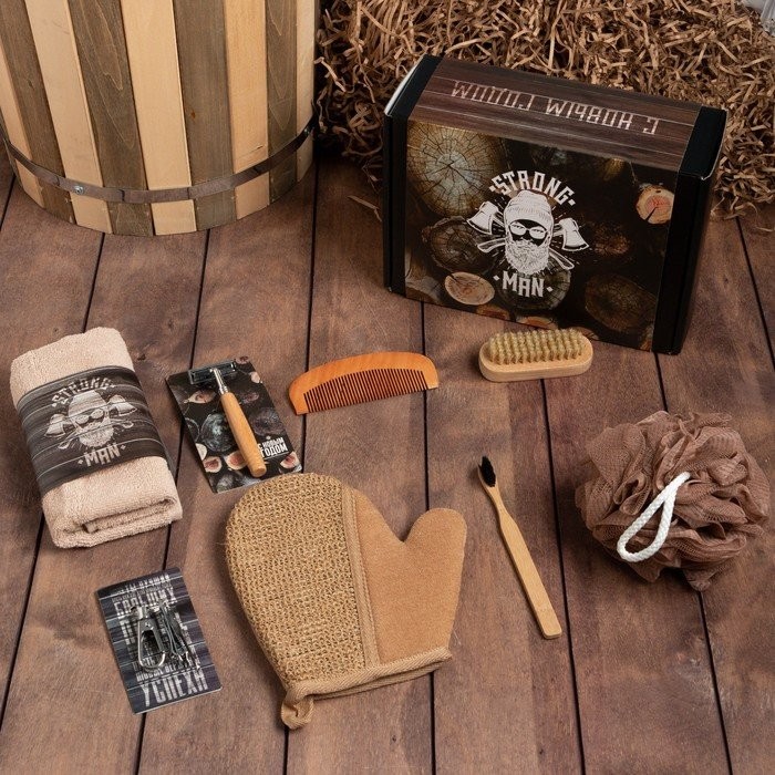 Подарочный набор новогодний Этель Strong man полотенце и аксессуары (7 предм)