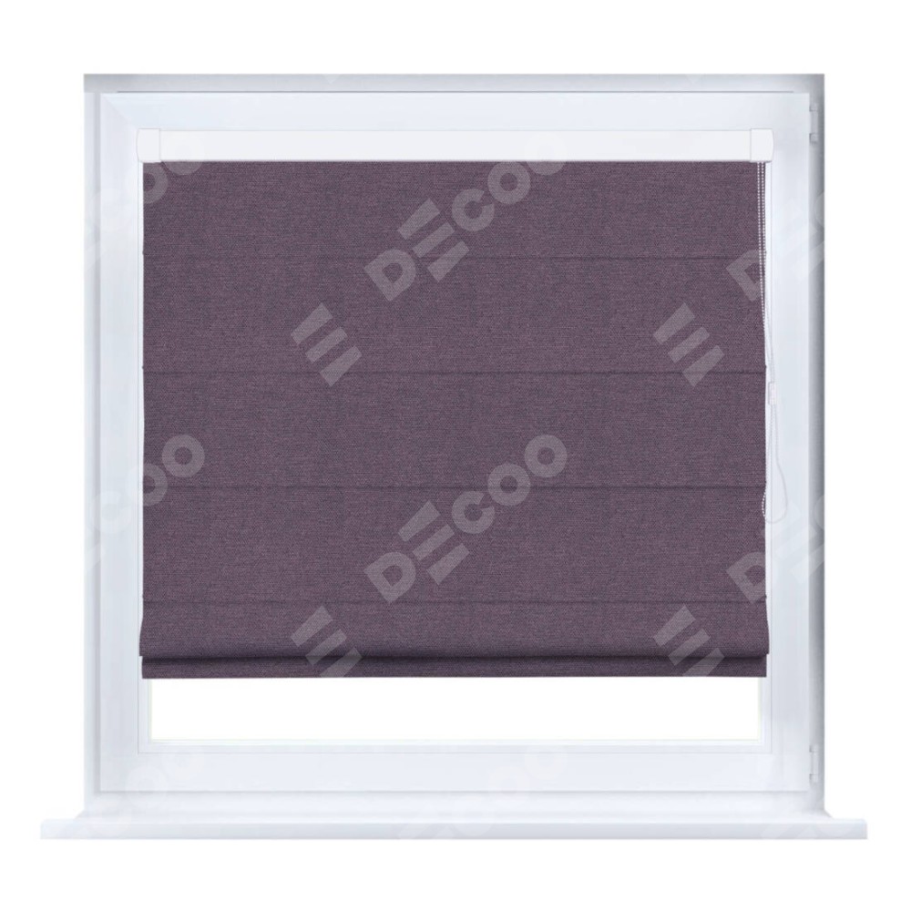 Римская штора производителя «Cortin», устанавливается на створку окна, пошита из ткани лён димаут светло-фиолетовый, артикул 83034. Штора шьётся по индивидуальным размерам, для данного типа римской шторы возможная ширина от 35 до 150 см., высота до 250 см.
