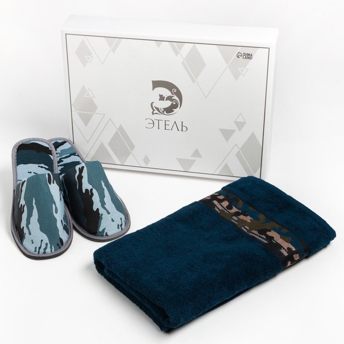 Набор подарочный Этель «Милитари DarkBlue» полотенце 70*130 см+тапки муж 42 р-р