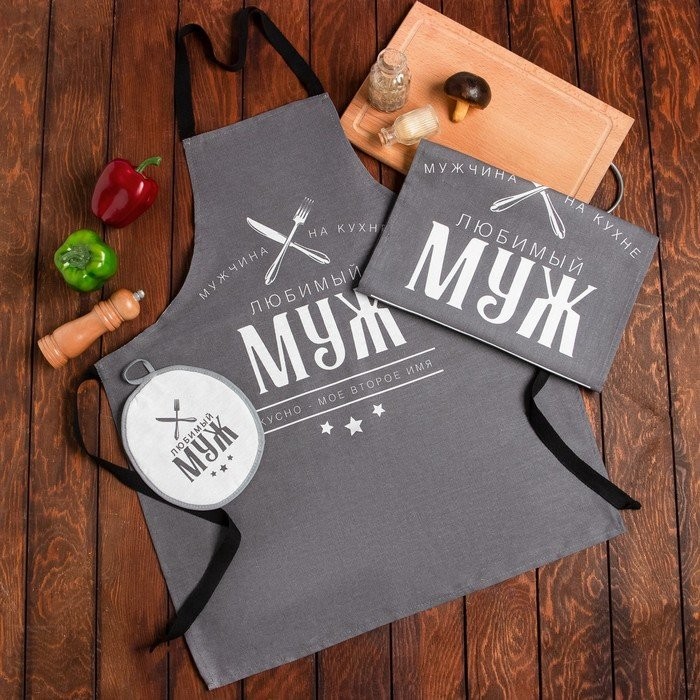 Кухонный набор (3 предмета) «Любимый муж», фартук 70×60 см, прихватка 20×20 см, полотенце 35х60см