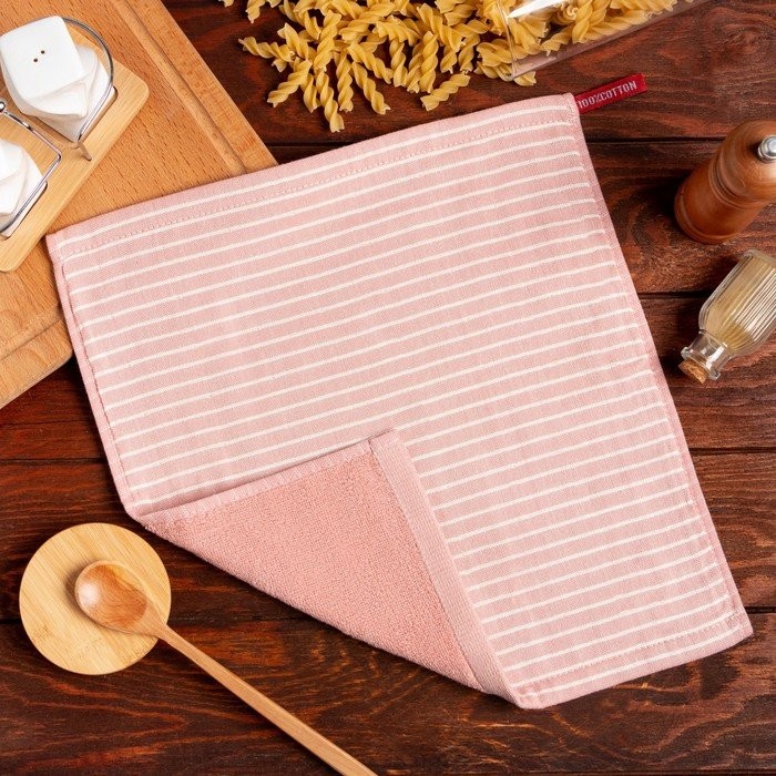 Салфетка для уборки двухсторонняя Доляна «Полоса» цв.розовый 35×35 см, 100% хлопок