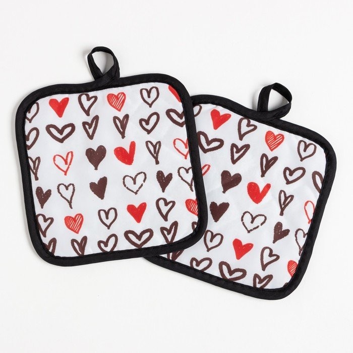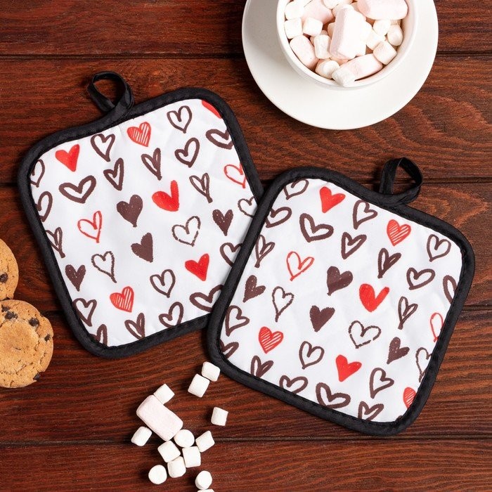 Кухонный набор (2 предмета) Этель LoveLife «Сердечки», прихватка 17×17 см — 2 шт, 100% п/э