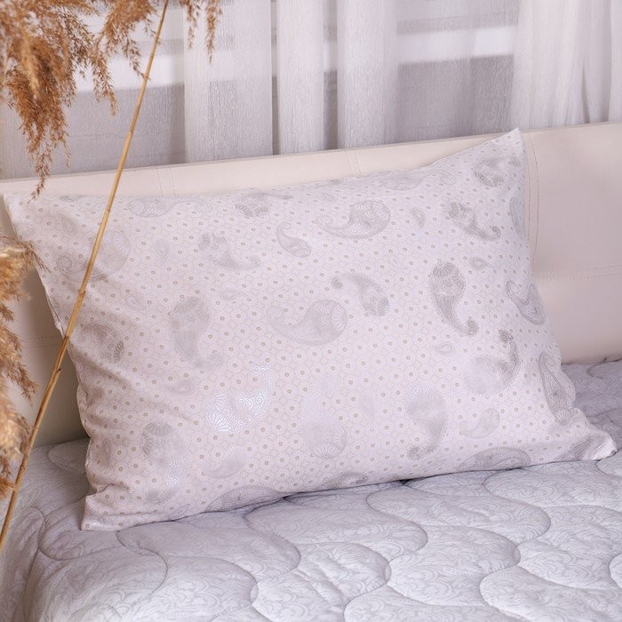Нижняя наволочка 50х70см на молнии Огурцы серебро №2 (белый), тик 90г/м, пэ70%,хл30%