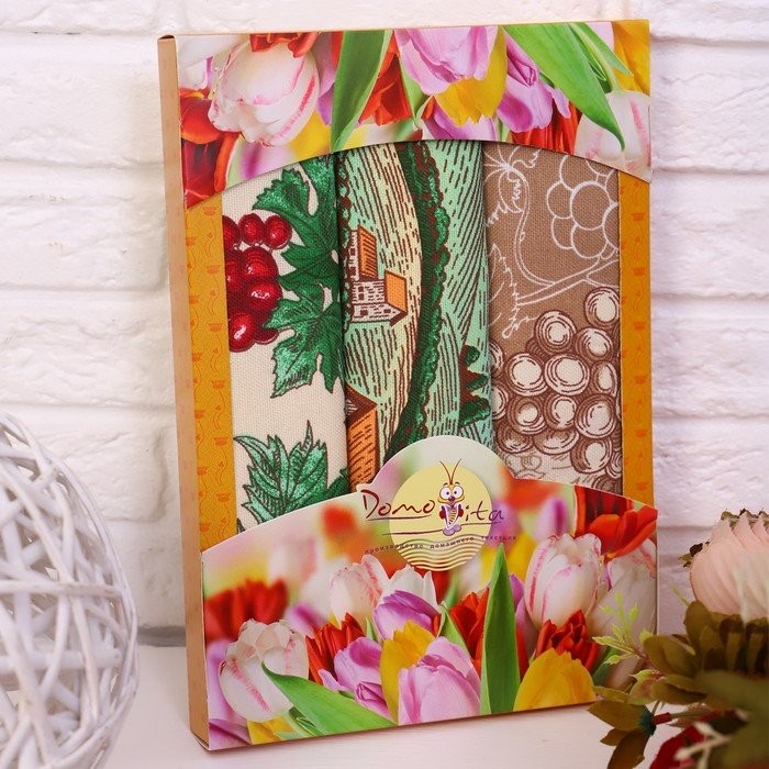 Набор полотенец в коробке Сомелье 45×60 см, 3 шт, вафля, 160 гр/м2, хлопок 100%