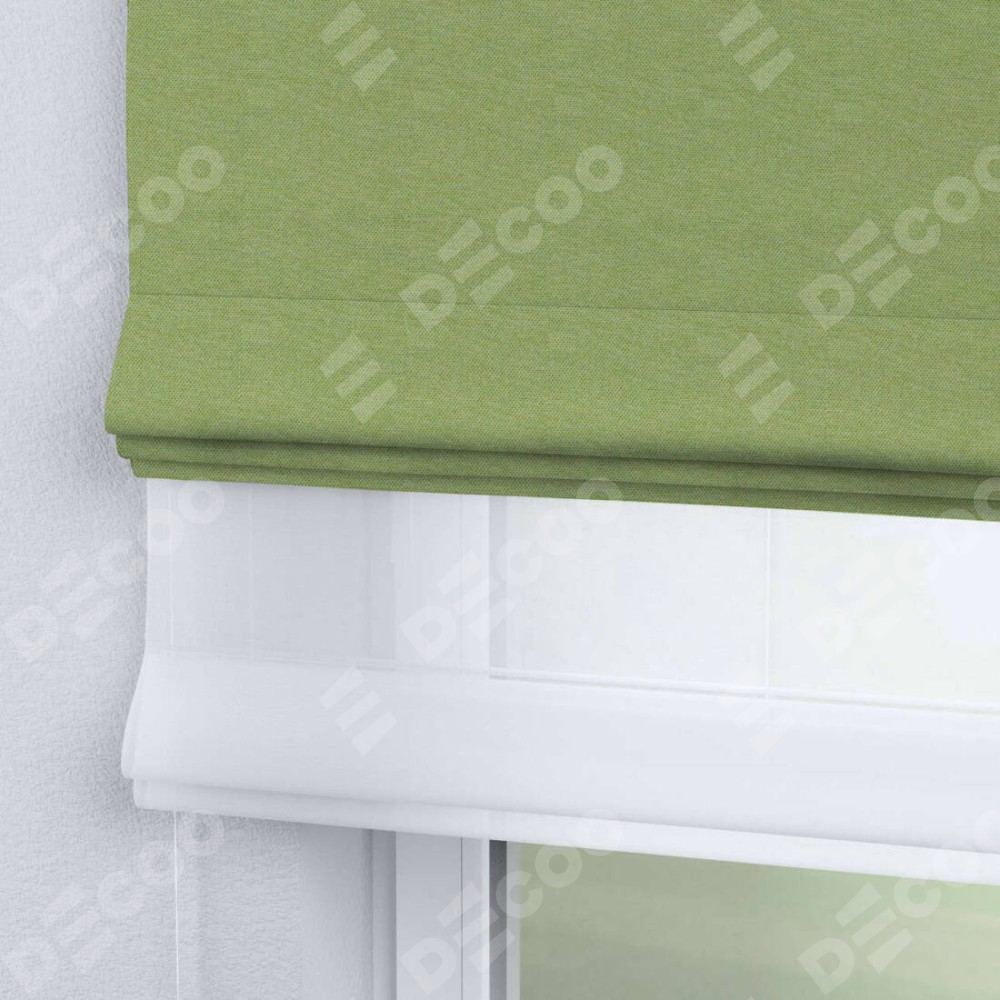Римская штора день-ночь производителя «Cortin», используется для проёма, пошита из двух полотен, с лицевой стороны лён димаут салатовый артикул 83032, вторая ткань тюль (по стандарту комплектуется тюль белого цвета артикул V-01). Имеет универсальный механизм и подходит для монтажа: на потолок, на стену и в нишу.