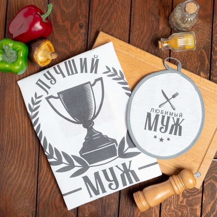 Кухонный набор (2 предмета) «Лучший муж», полотенце 35×60 см, прихватка 20×20 см