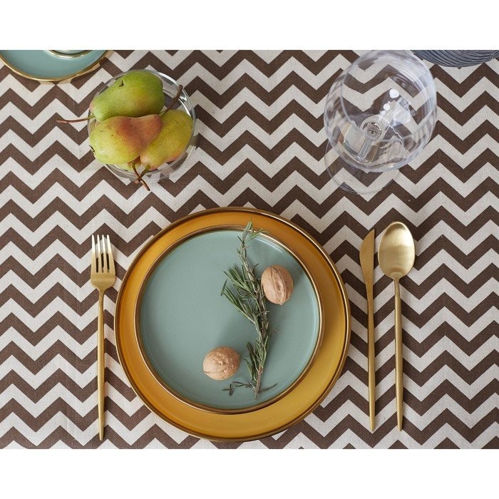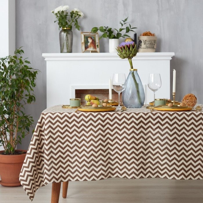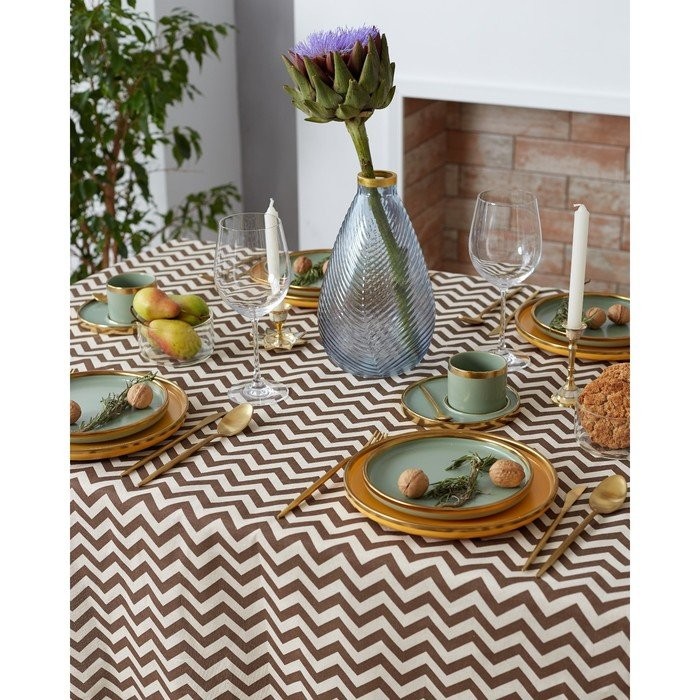 Скатерть Доляна 145х145см, Зигзаг цв.коричневый, 100%пэ, рогожка 200 гр/м