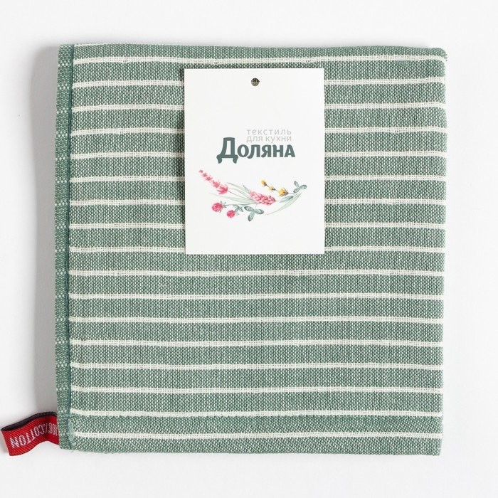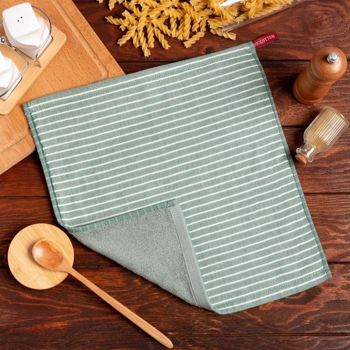 Салфетка для уборки двухсторонняя Доляна «Полоса» цв.зелёный 35×35 см, 100% хлопок