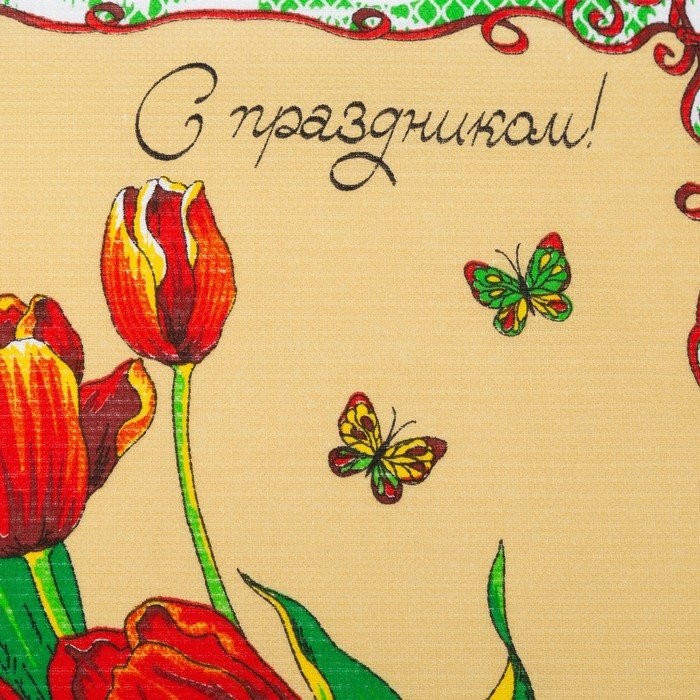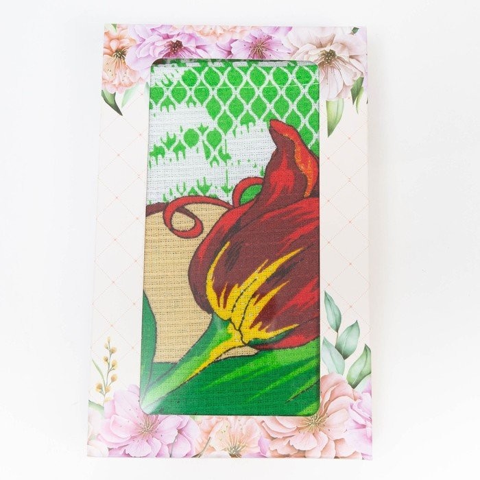 Полотенце в коробке 45×60 см, С праздником, салатовый, вафля, 160 гр/м2, хлопок 100%