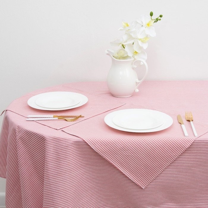Набор Доляна скатерть 145х200см/салфетки 40х40см 4шт, Розовые полоски, 100%пэ,рогожка 200 гр